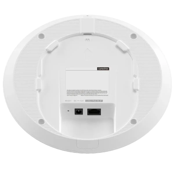 The Lysora L7Lite is a Wi-Fi 7 ceiling-mounted access point, designed for low to medium-density applications. It supports 100+ users, with a maximum bandwidth of 3570 Mbps between the 2.4 GHz and 5.8 GHz channels. There are 4 spatial streams with a coverage area of 140m² (1500ft²).