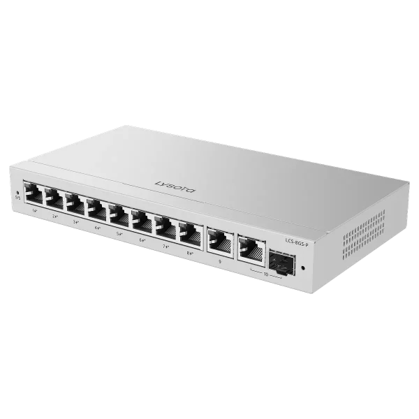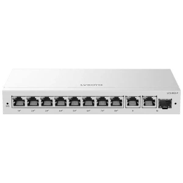The Lysora LCS-8GS-P is a eight port managed PoE switch with a 120 W PoE budget. You can manage it remotely through the Lysora Cloud Portal, letting you reboot individual ports and monitor the PoE usage of each port.
